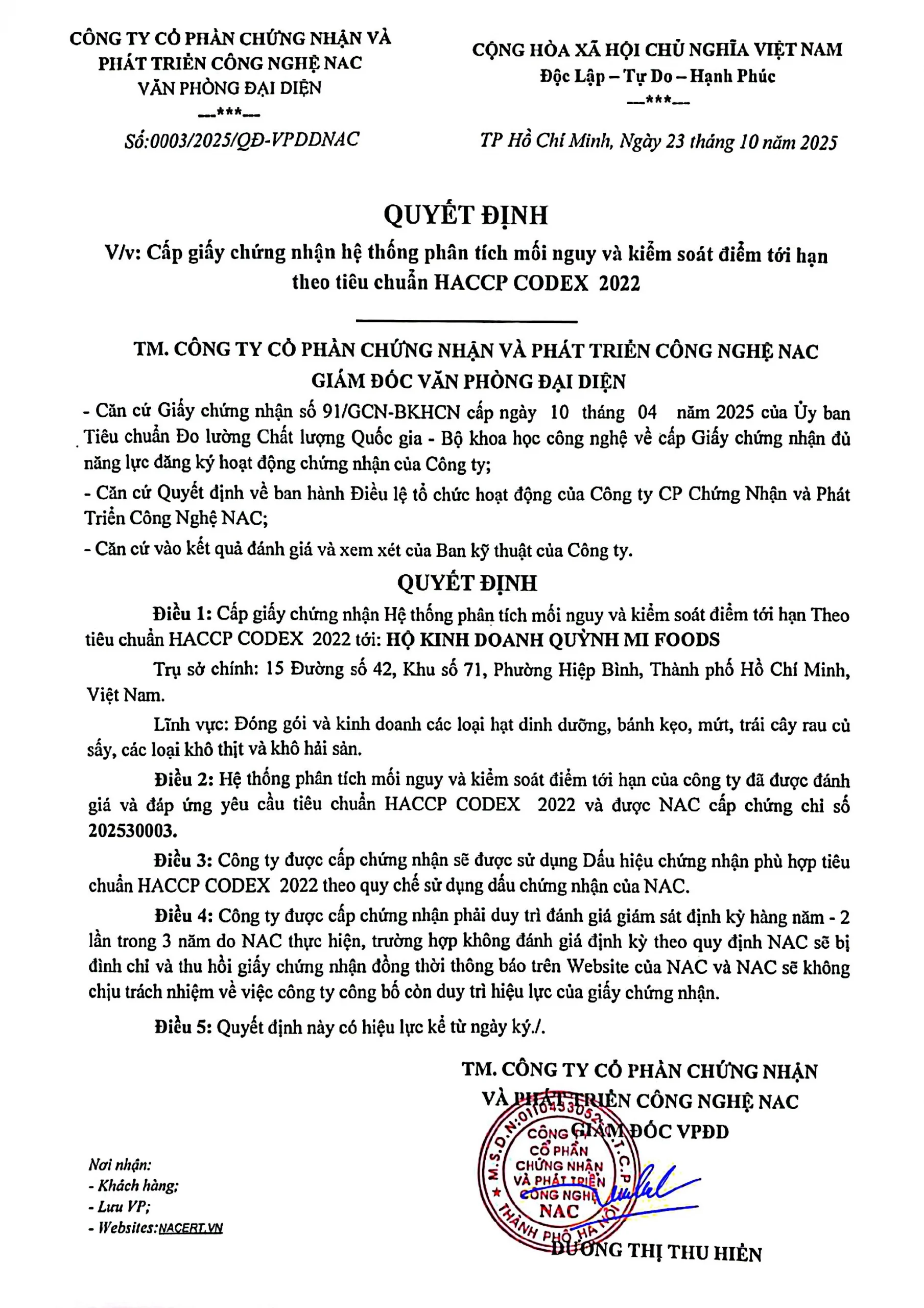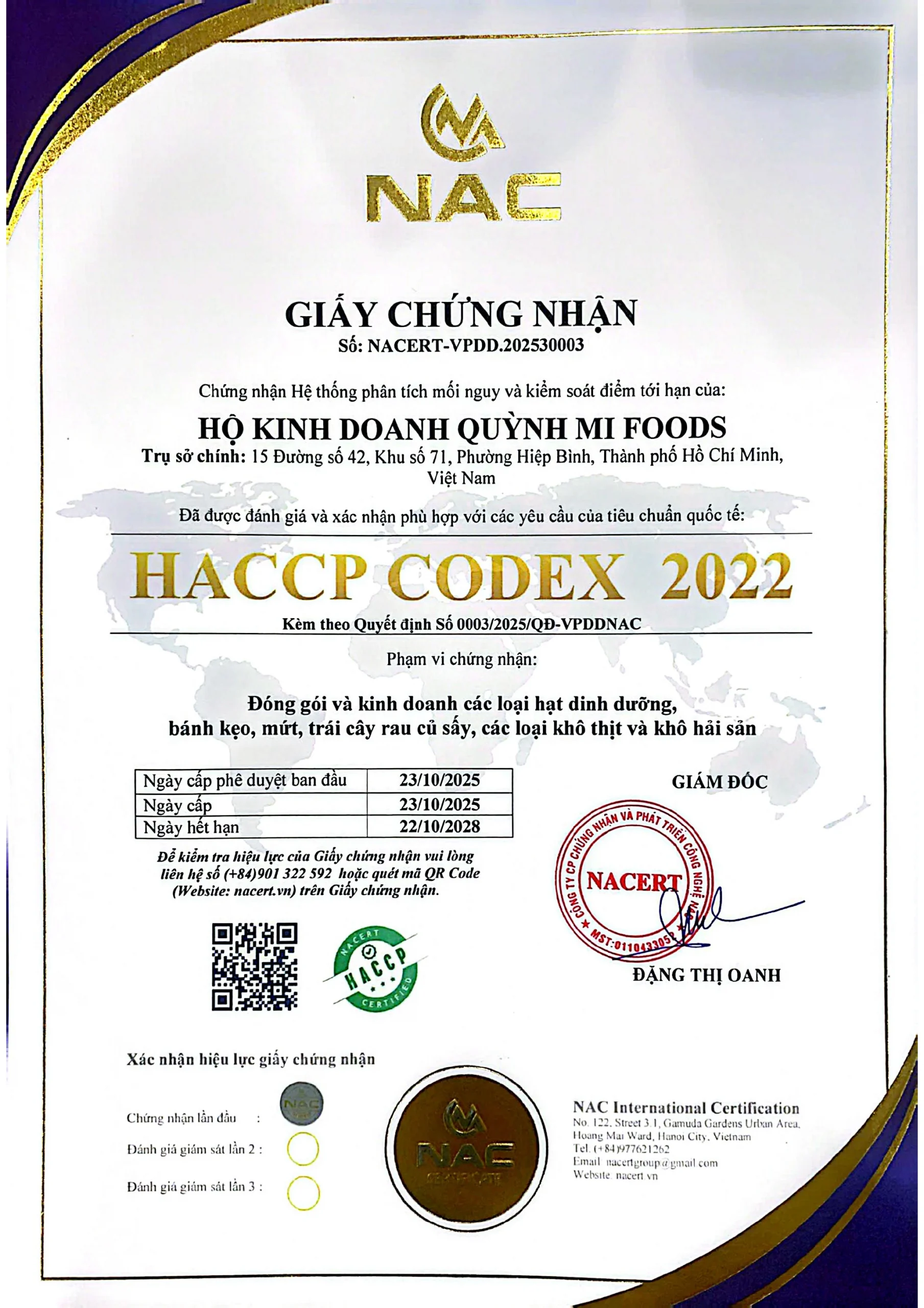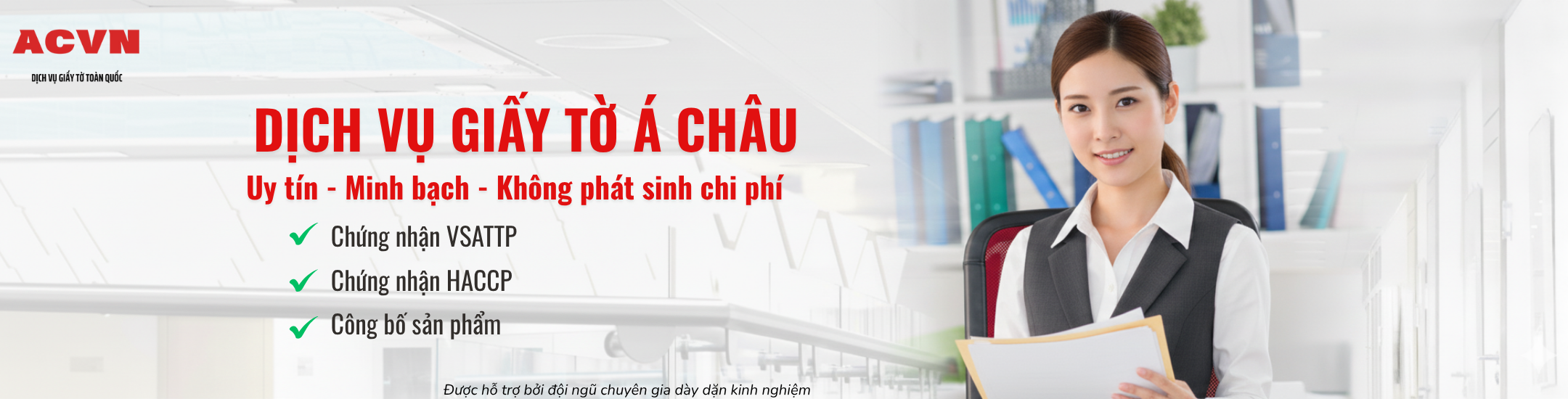 ” Á Châu là đơn vị chuyên nghiệp trong lĩnh vực thực hiện hồ sơ VSATTP và các thủ tục pháp lý cho doanh nghiệp trên toàn quốc, tập trung vào dịch vụ chính: Chứng nhận VSATTP – Chứng nhận HACCP – Công bố sản phẩm. Chúng tôi thực hiện đầy đủ quy trình: tư vấn, soạn thảo, hoàn thiện và bàn giao hồ sơ theo đúng quy định pháp luật. Mọi bước đều được báo giá rõ ràng, minh bạch, cam kết không phát sinh chi phí, đảm bảo tiến độ và tính chính xác.“